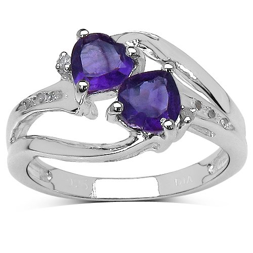 Best Seller! The Amethyst Ring Collection: Beautiful Twin Love Hearts Engagement Ring. 2 Heart Shaped Amethyst with Diamond Set Crossover Shoulders in Sterling Silver (Size O) Review
