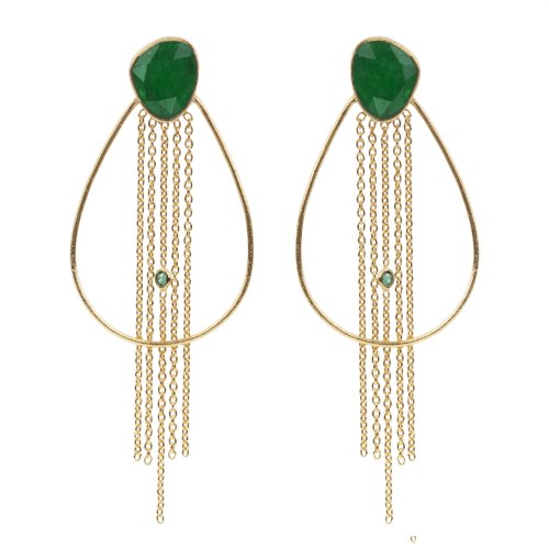 Auren offer Auren Women's 22ct Gold Plated Sterling Silver Carlu Emerald & Jade Fringe Earrings of Length 6cm. This awesome product currently limited units, you can buy it now for £225.00, You save -