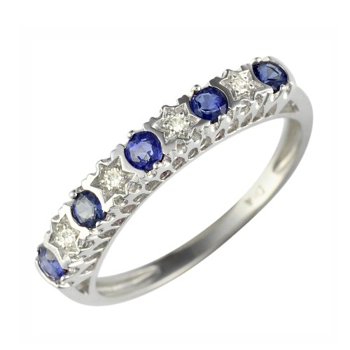 Ivy Gems offer Ivy Gems 9ct White Gold Light Blue Sapphire and Diamond Stars Half Eternity Ring - Size N. This awesome product currently limited units, you can buy it now for £80.67, You save -