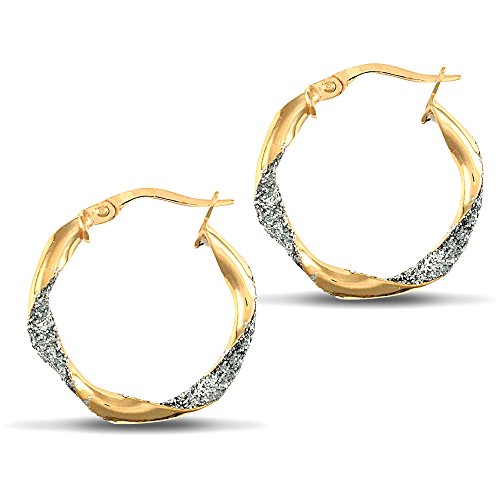 Jewelco London offer Jewelco London Ladies 9ct Yellow and White Gold Crushed Ice Glitter Twist 3mm Hoop Earrings 21mm. This awesome product currently limited units, you can buy it now for £71.00 £52.99, You save £18.01