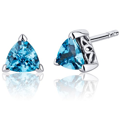 Center Stone: 2 Pieces Genuine Swiss Blue Topaz, Trillion Cut 6 mm, 1.50 carats total weight, Lagoon Blue Hue with Brilliant Sparkle. Earrings: 2.00 grams, Pure Sterling Silver with .925 stamp, Earrings feature Stud posts with Bullet backs, exceptional Design, Craftsmanship and Rhodium finishing. Perfect gift for Mothers Day, Birthdays, Valentines Day, Graduation, Christmas or just about any other occasion. Money Back Guarantee. Includes a Signature Gift Box , style PER-SE8002