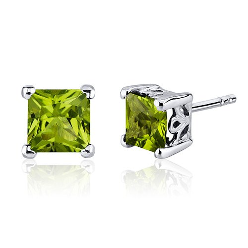 Center Stone: 2 Pieces Genuine Peridot, Princess Cut 6 mm, 2.00 carats total weight, Leaf Green Hue with Brilliant Sparkle. Earrings: 2.50 grams, Pure Sterling Silver with .925 stamp, Earrings feature Stud posts with Bullet backs, exceptional Design and Craftsmanship. Perfect gift for Mothers Day, Birthdays, Valentines Day, Graduation, Christmas or just about any other occasion. Money Back Guarantee. Includes a Signature Gift Box , style PER-SE8018
