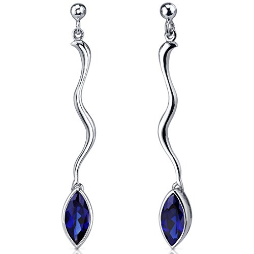 Gemstones: 2 Pieces Lab Created Blue Sapphire, Marquise Cut 10 x 5 mm, 2.50 carats total weight, Ceylon Blue Hue with Brilliant Sparkle. Earrings: 3.50 grams, Pure Sterling Silver with .925 stamp, Earrings feature Stud posts with Bullet backs, exceptional Design, Craftsmanship and Rhodium finishing. Perfect gift for Mothers Day, Birthdays, Valentines Day, Graduation, Christmas or just about any other occasion. Money Back Guarantee. Includes a Signature Gift Box , style PER-SE7846
