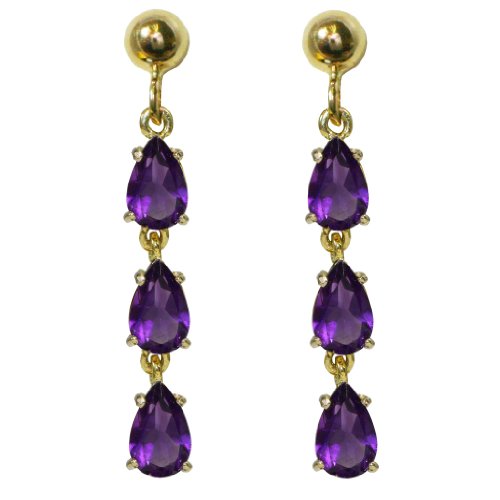 Universe Diamonds offer Stunning solid 9ct yellow gold Ladies pear cut natural Amethyst triple drop earrings. This awesome product currently limited units, you can buy it now for £129.99, You save -